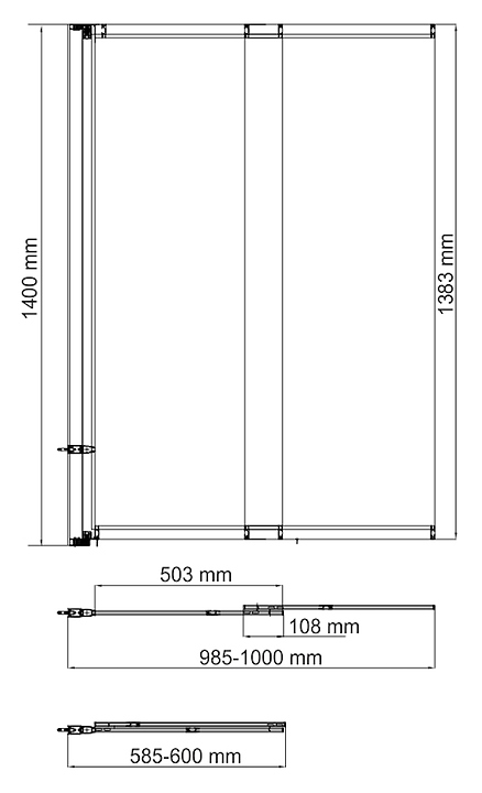 Шторка на ванну Wasserkraft Dill 661S02-100 100х140 см, раздвижная, профиль черный