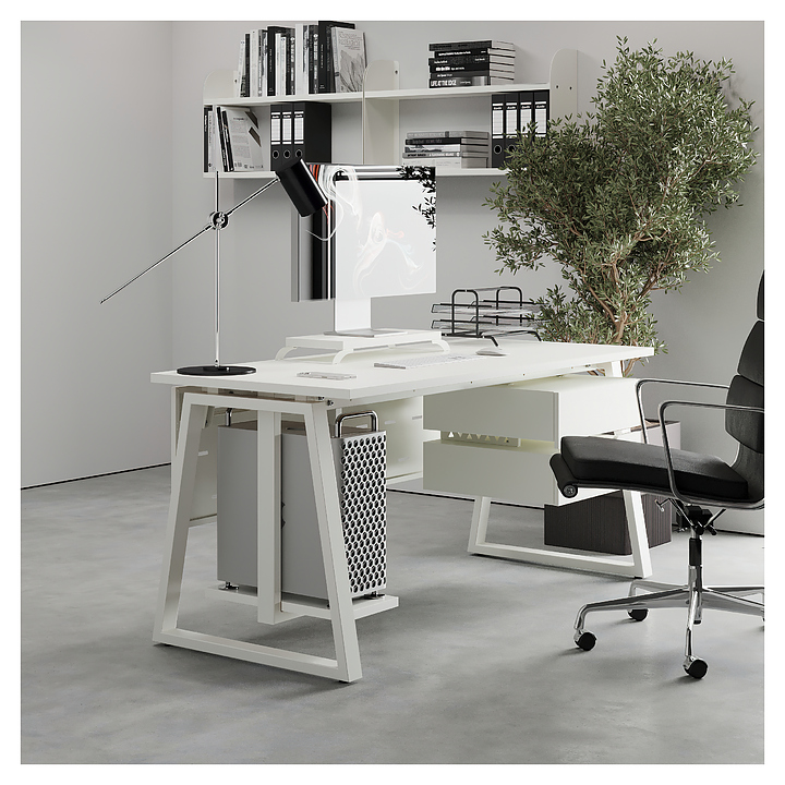 Офисный стол Кобор TR-140/60 white/premium используется в офисных помещениях и кабинетах руководителей. Модель оснащена опорами в форме трапеции. Каркас выполнен из металла, выкрашенного в цвет белый муар (RAL9016), столешница – из ламинированной древесно-стружечной плиты (ЛДСП) цвета белый премиум (W1000 ST9). Опции (заказываются отдельно):