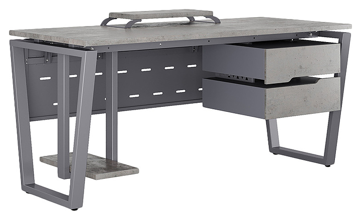 Офисный стол Кобор OTR-80/60 graphite/chicago используется в офисных помещениях и кабинетах руководителей. Модель оснащена опорами в форме обратной трапеции. Каркас выполнен из металла, выкрашенного в цвет графит муар (RAL7024), столешница – из ламинированной древесно-стружечной плиты (ЛДСП) цвета бетон чикаго (F186 ST9). Опции (заказываются отдельно):