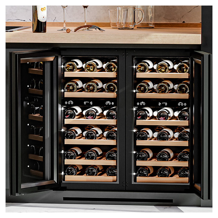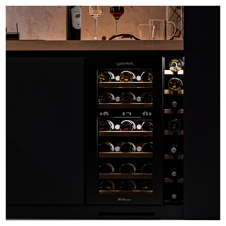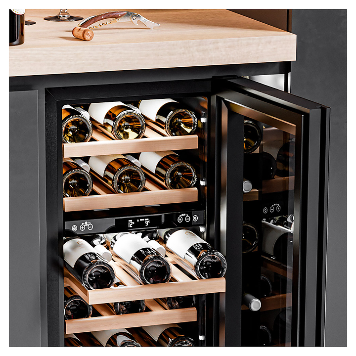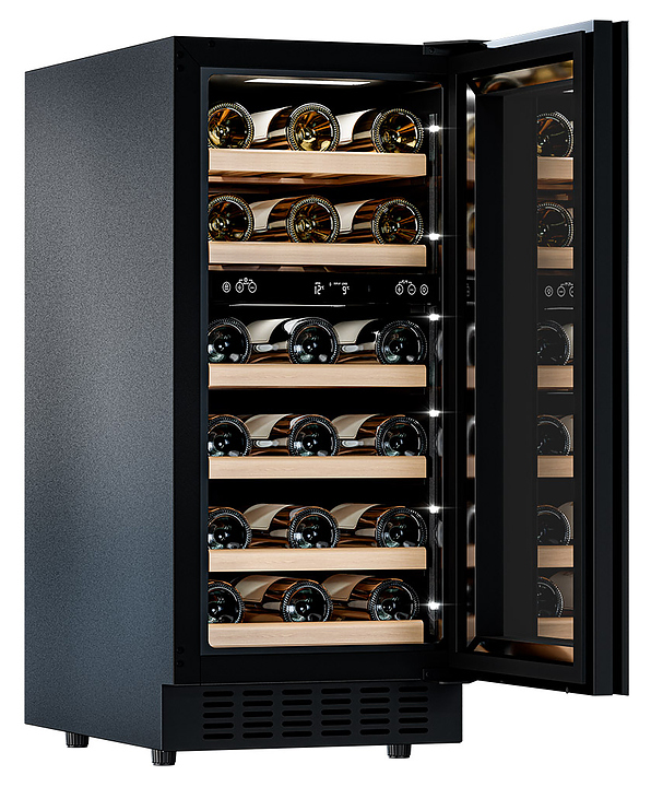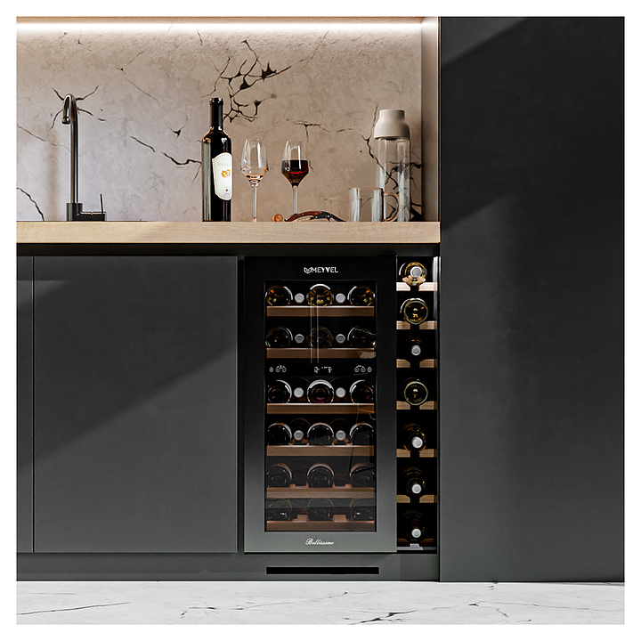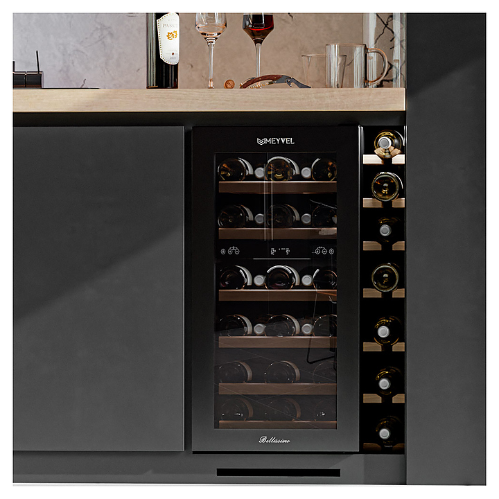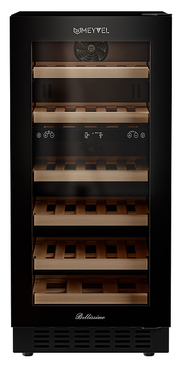 Винный шкаф MEYVEL MV28NH-KBT2 предназначен для демонстрации, хранения и создания оптимальных условий для сохранения всех вкусовых свойств вина в бутылках на предприятиях общественного питания, торговли, в барах, ресторанах, специализированных магазинах, частных домах или квартирах. Модель оснащена сенсорной панелью управления, 2 электронными термостатами и внутренней белой светодиодной подсветкой. Корпус выполнен из окрашенной в черный цвет стали, дверь - из тройного стекла с УФ защитой с черной рамкой, полки - из массива бука. В комплект поставки входят петли для перенавешивания двери. Особенности: