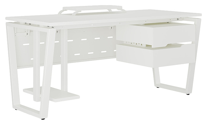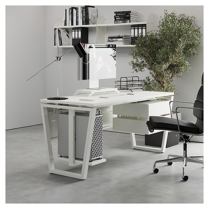 Офисный стол Кобор OTR-80/60 white/premium используется в офисных помещениях и кабинетах руководителей. Модель оснащена опорами в форме обратной трапеции. Каркас выполнен из металла, выкрашенного в цвет белый муар (RAL9016), столешница – из ламинированной древесно-стружечной плиты (ЛДСП) цвета белый премиум (W1000 ST9). Опции (заказываются отдельно):