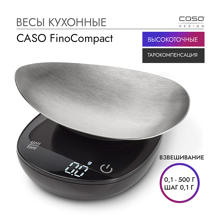 Кухонные весы CASO FinoCompact предназначены для взвешивания ингредиентов для блюд, специй, чая, кофе, лекарств и различных предметов в частных домах и квартирах. Модель оснащена светодиодным дисплеем и сенсорным управлением. Платформа выполнена из нержавеющей стали. В комплект поставки входит чаша для взвешивания из матовой нержавеющей стали. Особенности: