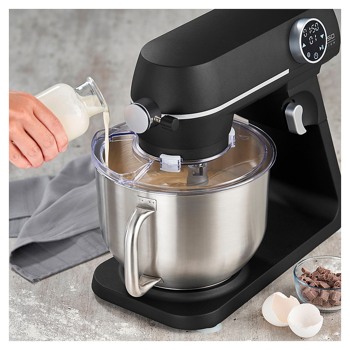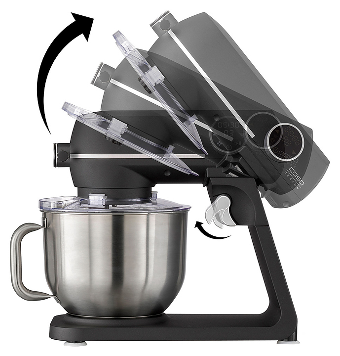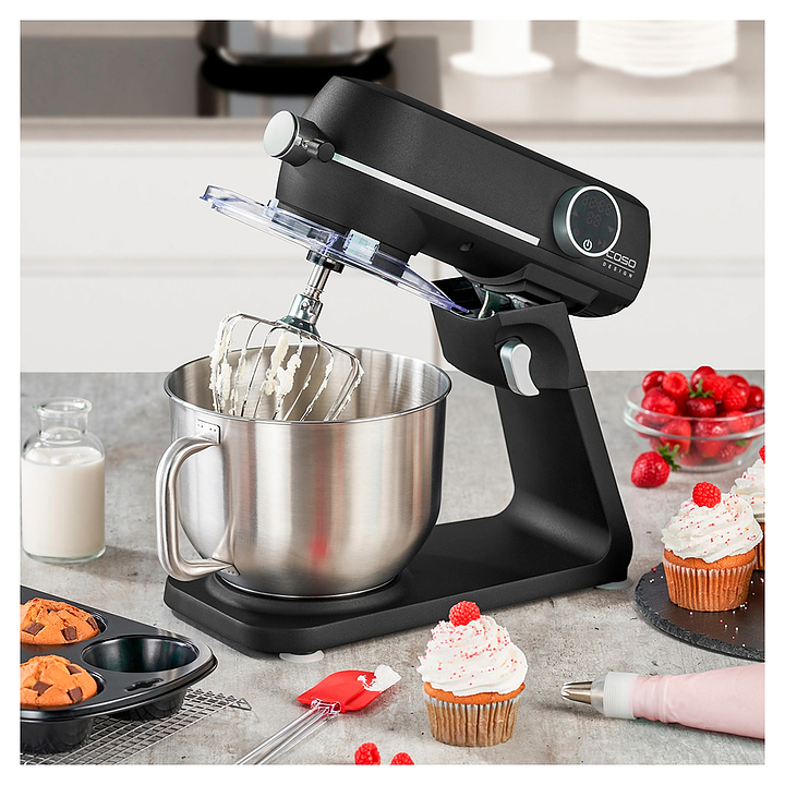 Кухонный комбайн CASO KM 1800 Black-E используется для нарезки и измельчения продуктов в частных домах, квартирах, отелях и офисах. Модель оснащена светодиодным дисплем с сенсорным управлением, большой чашей с ручкой из нержавеющей стали и защитой от брызг с отверстием для добавления продуктов. Корпус выполнен из литого алюминия, чаша - из стекла. В комплект поставки входят крюк для тяжелого теста с антипригарным покрытием, насадка для лёгкого теста и перемешивания, венчик для взбивания, лопаточка для теста из силикона. Особенности: