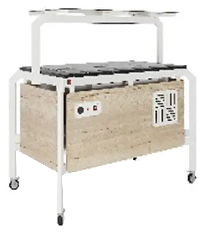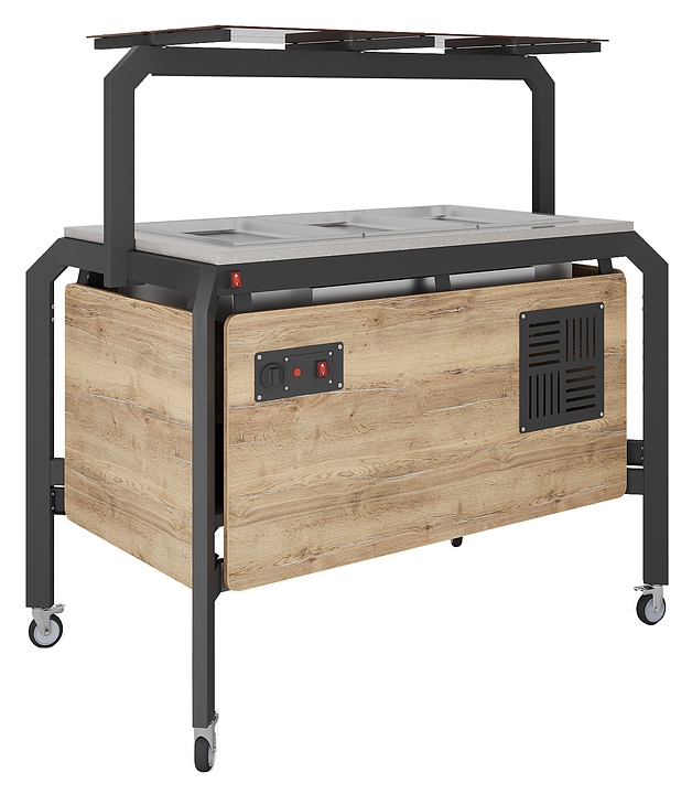 Мармит Кобор AT120 предназначен для демонстрации, кратковременного хранения и поддержания в горячем состоянии гарниров в гастроемкостях в составе линий раздачи в кафе, ресторанах и фудкортах, на предприятиях общественного питания и торговли. Модель оснащена механическим терморегулятором, ножками на поворотных колесах для мобильности, 2 колеса оснащены тормозом. Каркас выполнен из профиля сечением 60х30, покрытого порошковой краской, внешний корпус - из ЛДСП, столешница - из искусственного камня. Особенности: