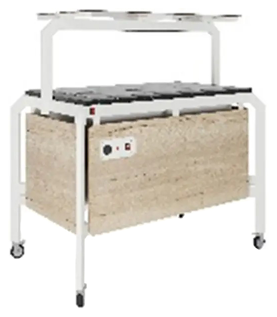 Салат-бар Кобор AO120 предназначен для демонстрации, кратковременного хранения охлаждения и раздачи салатов и холодных закусок из мяса, рыбы, фруктов и овощей в составе линий раздачи в кафе, ресторанах и фудкортах, на предприятиях общественного питания и торговли. Модель оснащена механическим терморегулятором, ножками на поворотных колесах для мобильности, 2 колеса оснащены тормозом. Каркас выполнен из профиля сечением 60х30, покрытого порошковой краской, внешний корпус - из ЛДСП, столешница - из искусственного камня. Эксплуатация оборудования допускается при температуре окружающего воздуха от 0 до 25 С, относительной влажности от 40 до 60 %. Особенности: