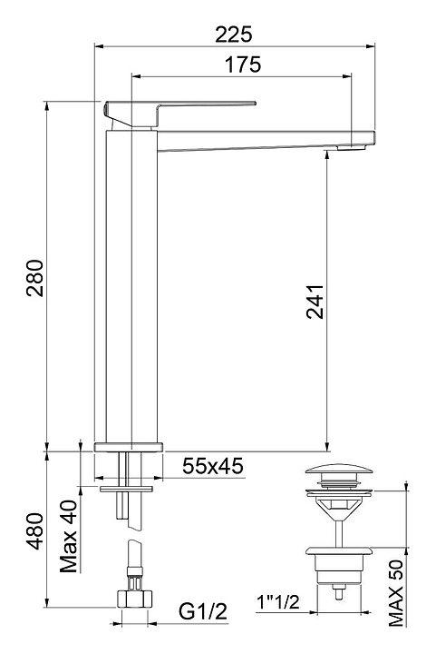 Смеситель для раковины WEBERT Pegaso PE830402794 с донным клапаном