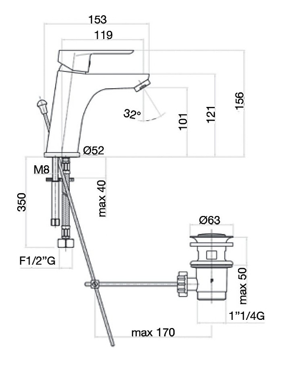 Смеситель для раковины WEBERT Sax Evolution SE833102560