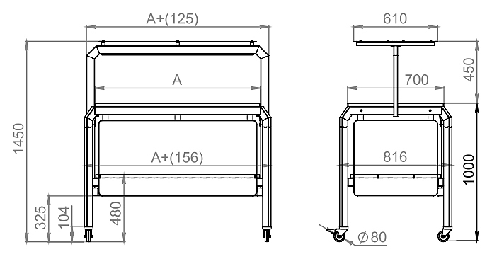 Стол нейтральный Кобор AN150 предназначен для демонстрации, кратковременного хранения и раздачи готовых блюд: салатов, закусок, кондитерских изделий и напитков, и чистых тарелок в составе линий раздачи или самообслуживания в кафе, ресторанах и фудкортах, на предприятиях общественного питания и торговли. Модель оснащена полкой-надстройкой со стеклом и поворотными колесами для мобильности, 2 колеса оснащены тормозом. Сварной каркас выполнен из профиля сечением 60х30, покрытого порошковой краской, внешний корпус - из ЛДСП, столешница - из камня. Дополнительные характеристики: