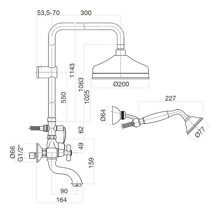 Душевая стойка WEBERT Armony AM721208065 предназначена для использования в ванных помещениях. Серия выполнена в стиле ретро. Модель оснащена круглыми верхним душем и ручной лейкой. Керамическая кран-букса обеспечивает бесшумное смешивание воды. Изделие выполнено из высококачественной латуни, отличающейся прочностью, долговечностью и устойчивостью к перепадам температуры, шланг - из металла. В комплект поставки входят смеситель, верхний душ, душевая лейка, держатель душевой лейки, шланг и стойка. Особенности: