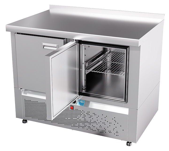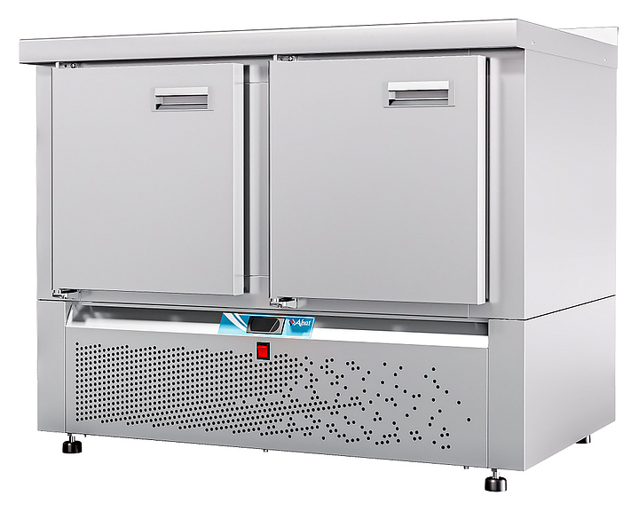 Морозильный стол Abat СХН-70Н-01 предназначен для раскатки теста, обработки ингредиентов для приготовления блюд, охлаждения и кратковременного хранения скоропортящихся продуктов и напитков на предприятиях общественного питания и торговли. Модель оснащена неохлаждаемой рабочей поверхностью, 2 распашными дверьми с доводчиками и уплотнителями с магнитной вставкой, 2 регулируемыми по высоте полками-решетками и регулируемыми по высоте ножками. Цельнозаливной корпус выполнен из высококачественной нержавеющей стали AISI 202 c пенополиуретановой изоляцией. Особенности: