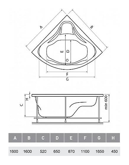 Ванна Relisan EcoPlus Сена 160х160 см, акрил