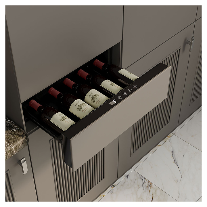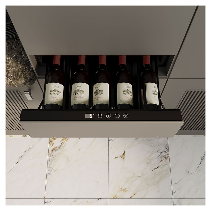 Встраиваемый винный шкаф Libhof DT-5 предназначен для хранения при оптимальных условиях бутилированного вина различных сортов в барах, ресторанах, специализированных магазинах, подсобных складских помещениях, а также в домашних условиях. Модель оснащена выдвижной холодильной камерой, горизонтальной сенсорной панелью управления и цифровым дисплеем с белой подсветкой индикации. Корпус выполнен из металла с антикоррозийным покрытием черного цвета. В комплект поставки входят инструкция по эксплуатации и гарантийный талон. Особенности: