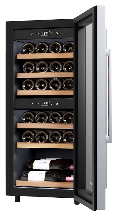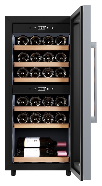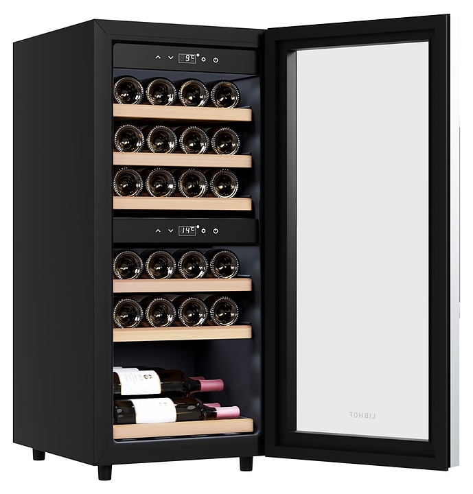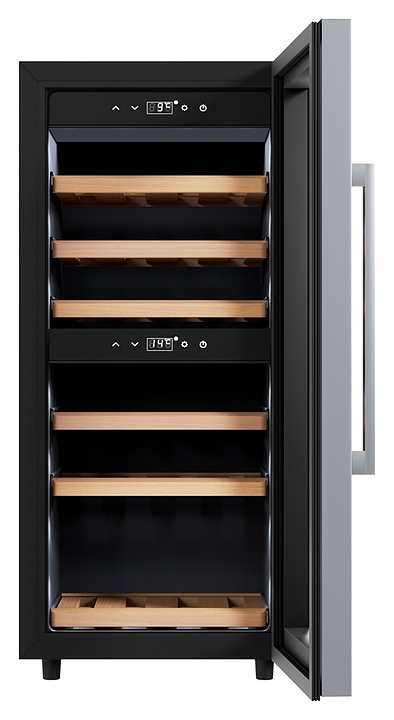 Винный шкаф Libhof Gourmet GQD-24 Black предназначен для хранения при оптимальных условиях бутилированного вина различных сортов в барах, ресторанах, специализированных магазинах, подсобных складских помещениях, а также в домашних условиях. Модель оснащена холодильной камерой с 2 независимыми температурными зонами, распашной дверью на скрытых внутренних петлях, длинной вертикальной рукояткой, прозрачным обзорным стеклом, внутренней сенсорной панелью управления и цифровым дисплеем с белой подсветкой индикации. Корпус выполнен из металла с антикоррозийным покрытием черного цвета, боковой профиль рамы двери и рукоятка – из металла с серебристой поверхностью, полки – из массива буковой древесины. В комплект поставки входят 6 полок с направляющими для размещения бутылок, крепеж для рукоятки, инструкция по эксплуатации и гарантийный талон. Особенности: