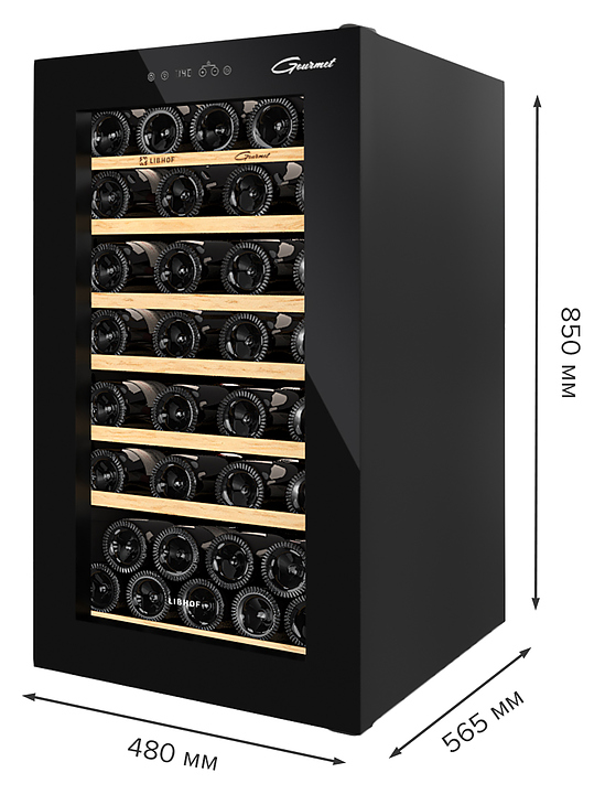 Винный шкаф Libhof Gourmet GM-49 Black предназначен для хранения при оптимальных условиях бутилированного вина различных сортов в барах, ресторанах, специализированных магазинах, подсобных складских помещениях, а также в домашних условиях. Модель оснащена монотемпературной холодильной камерой, распашной дверью на внутренних петлях, прозрачным обзорным стеклом, внешней сенсорной панелью управления и дисплеем индикации. Корпус выполнен из металла с антикоррозийным покрытием черного цвета, остекление – из закаленного стекла, полки и корзина – из массива буковой древесины. В комплект поставки входят 7 полок с направляющими и корзина для размещения бутылок, инструкция по эксплуатации и гарантийный талон. Особенности: