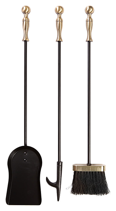 Каминный набор Royal Flame T41111АK используется совместно с дровяными каминами и печами для безопасного перемещения поленьев и ворошения углей, очистки топочной камеры от золы и сажи, а также для органичного дополнения интерьера благодаря стильному лаконичному дизайну. Модель состоит из подставки и 3 инструментов: кочерги, щетки и совка. Подставка оснащена устойчивым круглым основанием с 3 ножками и 3 держателями для компактного хранения инвентаря, аксессуары имеют фигурные рукоятки с удобным захватом. Набор изготовлен из стали и чугуна. Дополнительные характеристики: