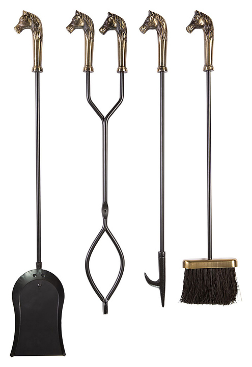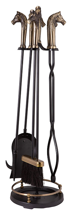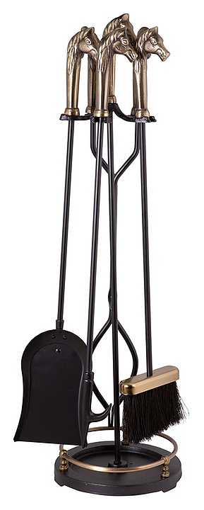 Каминный набор Royal Flame T51040AK используется совместно с дровяными каминами и печами для безопасного перемещения поленьев и ворошения углей, очистки топочной камеры от золы и сажи, а также для органичного дополнения интерьера благодаря стильному лаконичному дизайну. Модель состоит из подставки и 4 инструментов: кочерги, щипцов, щетки и совка. Подставка оснащена устойчивым основанием и 4 держателями для компактного хранения инвентаря, аксессуары имеют рукоятки в форме головы лошади. Набор изготовлен из стали и чугуна. Дополнительные характеристики: