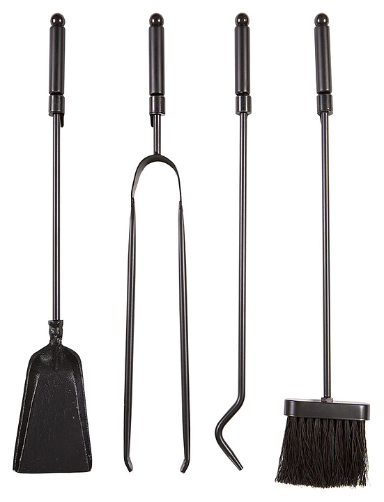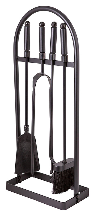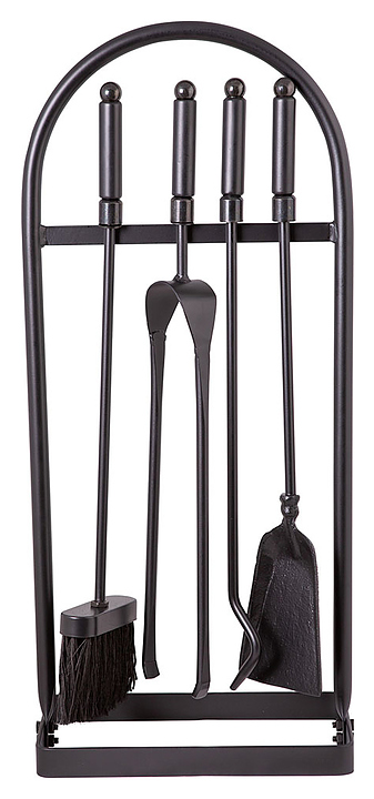 Каминный набор Royal Flame T15190BK используется совместно с дровяными каминами и печами для безопасного перемещения поленьев и ворошения углей, очистки топочной камеры от золы и сажи, а также для органичного дополнения интерьера благодаря стильному лаконичному дизайну. Модель состоит из подставки арочной формы и 4 инструментов: кочерги, щипцов, щетки и совка. Подставка оснащена устойчивым прямоугольным основанием и держателем для компактного хранения инвентаря, аксессуары имеют лаконичные рукоятки цилиндрической формы с удобным захватом. Набор изготовлен из стали.