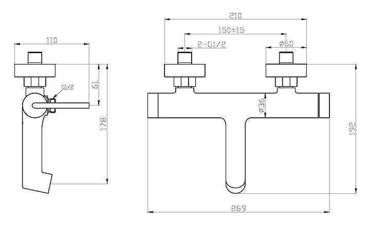 Смеситель для ванны и душа BelBagno ACQUA-VASM-NERO