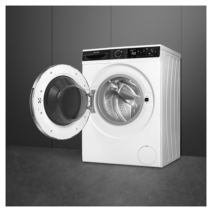 Стиральная машина с фронтальной загрузкой Smeg WM3T60CRU используется в прачечных, химчистках и отелях, а также в частных домах и квартирах для стирки, полоскания и отжима белья. Модель оснащена инвенторным бесщеточным мотором и черной панелью управления с белой LED подсветкой. Барабан выполнен из нержавеющей стали, бак - из полипропилена. Программы: