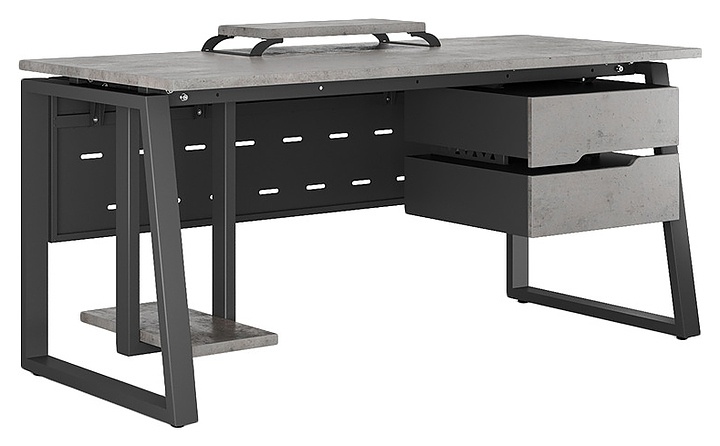 Офисный стол Кобор TS1-80/60 black/chicago используется в офисных помещениях и кабинетах руководителей. Модель оснащена опорами в форме наклонной трапеции. Каркас выполнен из металла, выкрашенного в цвет черный муар (RAL9005), столешница – из ламинированной древесно-стружечной плиты (ЛДСП) цвета бетон чикаго (F186 ST9). Опции (заказываются отдельно):