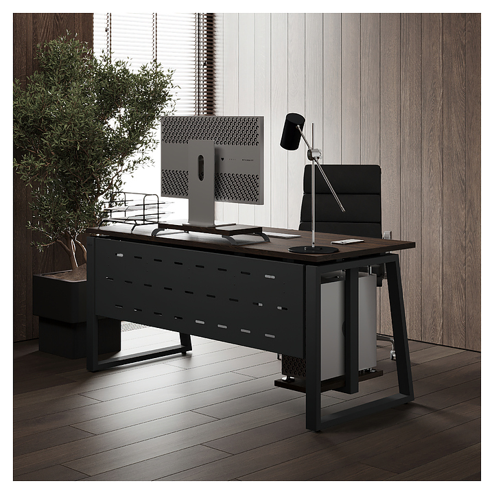 Офисный стол Кобор TS1-80/60 black/charlston используется в офисных помещениях и кабинетах руководителей. Модель оснащена опорами в форме наклонной трапеции. Каркас выполнен из металла, выкрашенного в цвет черный муар (RAL9005), столешница – из ламинированной древесно-стружечной плиты (ЛДСП) цвета дуб чарльстон (H3154 ST36). Опции (заказываются отдельно):