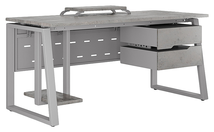 Офисный стол Кобор TS1-80/60 aluminum/chicago используется в офисных помещениях и кабинетах руководителей. Модель оснащена опорами в форме наклонной трапеции. Каркас выполнен из металла, выкрашенного в цвет алюминиевый металлик (RAL9006), столешница – из ламинированной древесно-стружечной плиты (ЛДСП) цвета бетон чикаго (F186 ST9). Опции (заказываются отдельно):