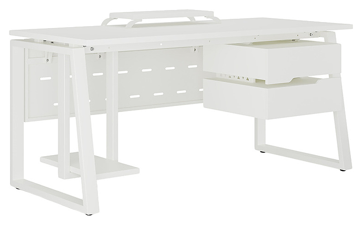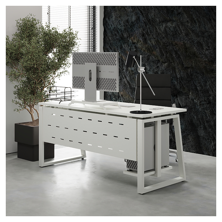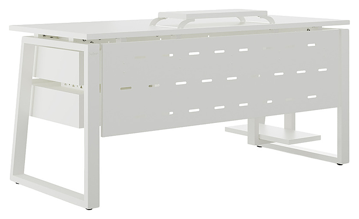 Офисный стол Кобор TS1-140/60 white/premium используется в офисных помещениях и кабинетах руководителей. Модель оснащена опорами в форме наклонной трапеции. Каркас выполнен из металла, выкрашенного в цвет белый муар (RAL9016), столешница – из ламинированной древесно-стружечной плиты (ЛДСП) цвета белый премиум (W1000 ST9). Опции (заказываются отдельно):