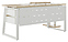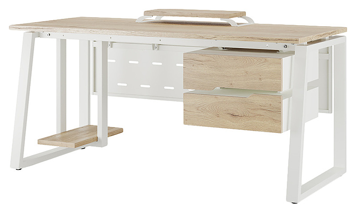 Офисный стол Кобор TS1-80/60 white/natural используется в офисных помещениях и кабинетах руководителей. Модель оснащена опорами в форме наклонной трапеции. Каркас выполнен из металла, выкрашенного в цвет белый муар (RAL9016), столешница – из ламинированной древесно-стружечной плиты (ЛДСП) цвета натуральный дуб (H1180 ST37). Опции (заказываются отдельно):