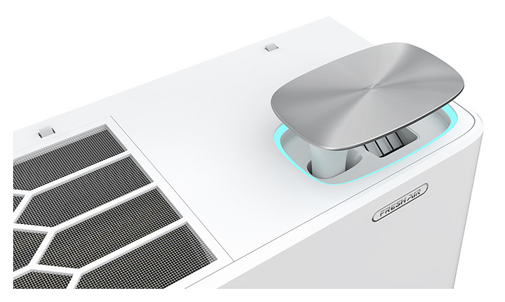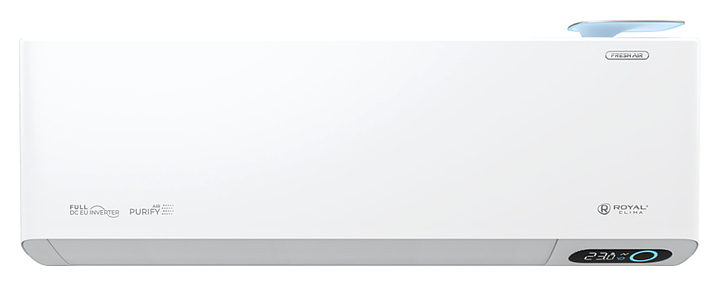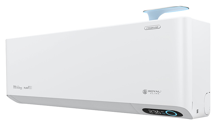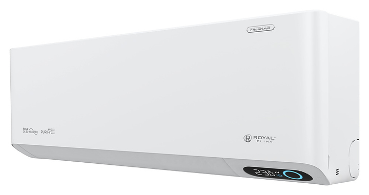 Настенная сплит-система ROYAL Clima RCI-RFS28HNсерии ROYAL FRESH STANDARD Full DC EU Inverter используется для создания максимально кофмортных условий микроклимата в жилых, офисных и коммерческих помещениях. Модель состоит из внутреннего блока RCI-RFS28HN/IN, наружного блока RCI-RFS28HN/OUT и частично интегрированного во внутренний блок бризера (приточной установки). Наружный блок оснащен виброопорами, защитными вентиляционной решеткой и крышкой для вентилей, внутренний блок – воздухозаборной решеткой, откидной фронтальной крышкой, подвижной горизонтальной заслонкой, электронным блоком управления и светодиодным дисплеем скрытого типа с проецируемой на поверхность фронтальной панели индикацией, бризер – установленным на внутреннем блоке горизонтальным воздушным клапаном-отражателем, пульт – информативным жидкокристаллическим дисплеем и кнопочной клавиатурой. Корпус внутреннего блока с поверхностью белого цвета, корпус пульта обтекаемой формы выполнен из ударопрочного белого пластика, теплообменники имеют покрытие ламелей Golden Fin с высокими антикоррозийными свойствами.