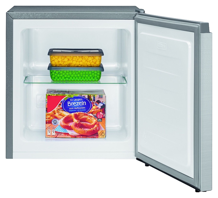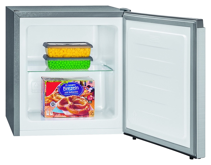 Морозильник Bomann GB 7246 ix-look предназначен для охлаждения, заморозки и хранения пищевых продуктов и напитков на предприятих общественного питания и торговли, в гостиничных комплексах, офисах, а также в домашних условиях. Модель оснащена 1 рабочей камерой, распашной дверью и расположенным на внешней задней стенке поворотным терморегулятором. Корпус выполнен из металла с антикоррозийным покрытием серого цвета, дверь с покрытием серебристого цвета, рукоятка и окантовка – из серого пластика, внутренняя облицовка – из белого пластика, полка – из стекла. В комплект поставки входят съемная полка и форма для льда. Особенности: