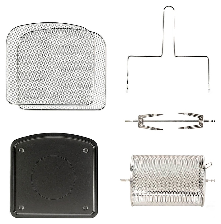 Аэрофритюрница Black+Decker BXAFO1200E предназначена для приготовления различных пищевых продуктов без использования масла в отелях, офисах, а также домашних условиях. Модель оснащена откидной дверью с горизонтальной термоизолированной рукояткой, смотровым окном, панелью управления с сенсорной клавиатурой, светодиодными цифровым дисплеем и лампами индикации. Корпус выполнен из пластика черного цвета с глянцевой поверхностью, рукоятка с фронтальной вставкой цвета нержавеющей стали. Комплектация:
