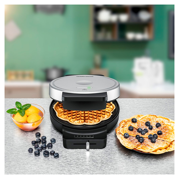 Вафельница Rommelsbacher WA 850 используется в домашних условиях для приготовления венских вафель в форме сердечка. Модель оснащена кабелем питания с вилкой и электромеханической панелью управления. Корпус выполнен из прочного пластика в серебристо-черной цветовой гамме, жарочные поверхности – из литого под давлением алюминия с высококачественным 2-слойным антипригарным покрытием Xylan® Plus. Особенности: