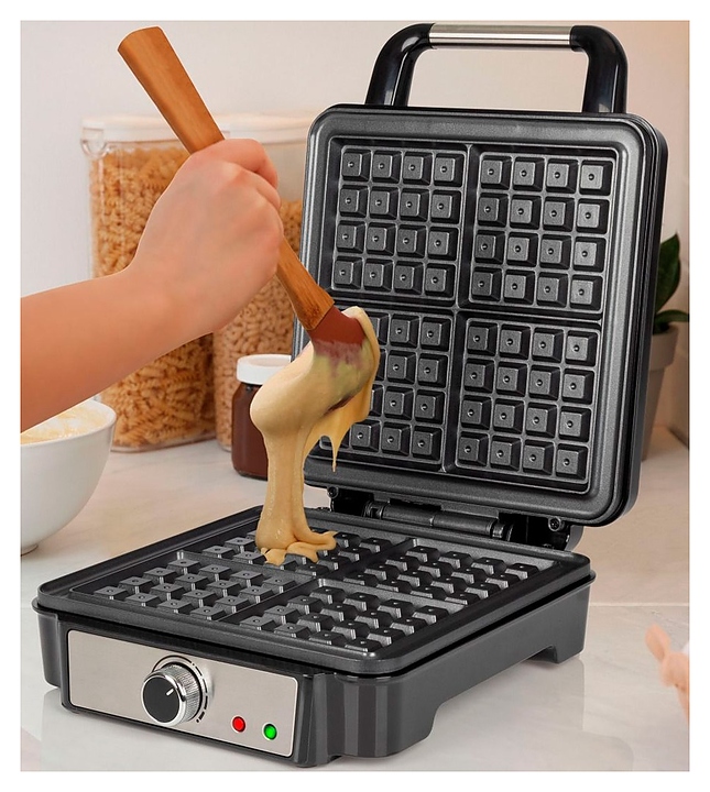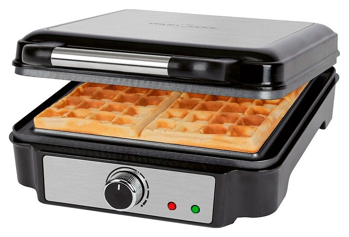 Вафельница Profi Cook PC-WA 1241 используется в домашних условиях для выпекания бельгийских вафель квадратной формы. Модель оснащена кабелем питания с вилкой, откидной крышкой с горизонтальной рукояткой и электромеханической панелью управления. Корпус выполнен из прочного пластика черного цвета с вставками из нержавеющей стали на рукоятке, фронтальной и верхней панелях, жарочные поверхности – из металла с антипригарным покрытием. Особенности: