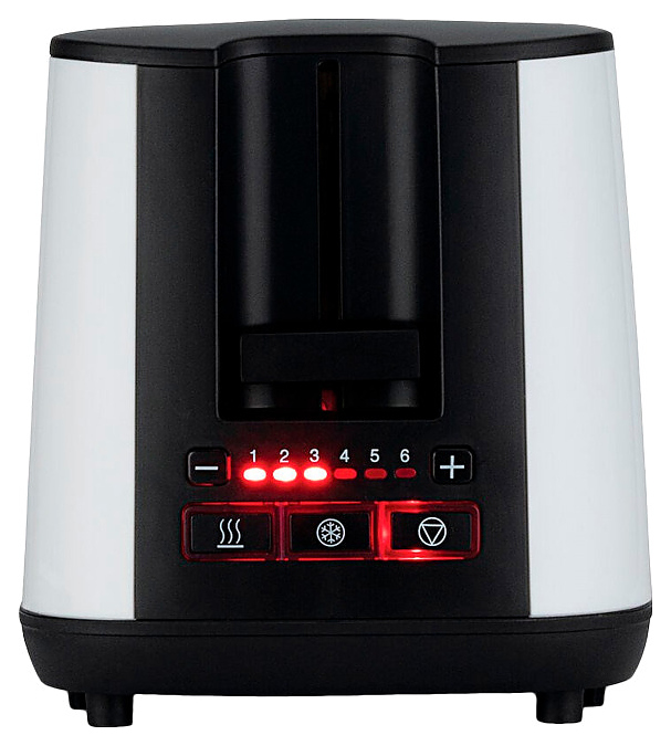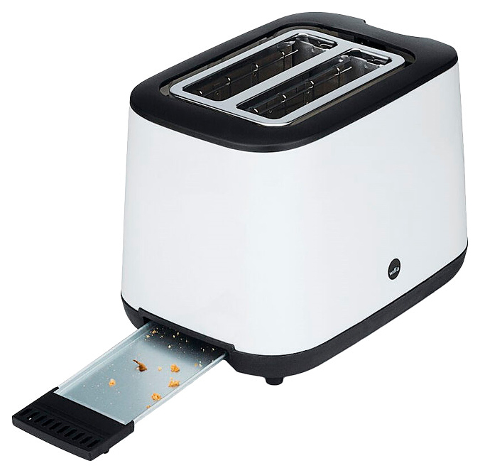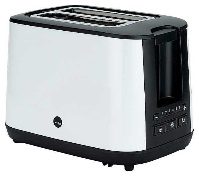 Тостер Wilfa TO3GW-1000 используется в отелях, офисах, а также домашних условиях для обжаривания ломтиков хлеба различных сортов. Модель оснащена 2 отсеками для тостов, кабелем питания с вилкой, электромеханической панелью управления с рычагом для загрузки хлеба, функциональными кнопками и светодиодными лампами индикации. Корпус прибора обтекаемой формы выполнен из пластика белого цвета, основание, ручка поддона, верхняя и боковая панели – из черного пластика, решетки, окантовка слотов и корпус поддона – из металла. Особенности: