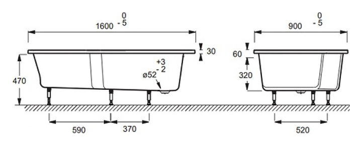Ванна Jacob Delafon Bain Douche Neo E6D000R-00 160х90 см, акрил, правая
