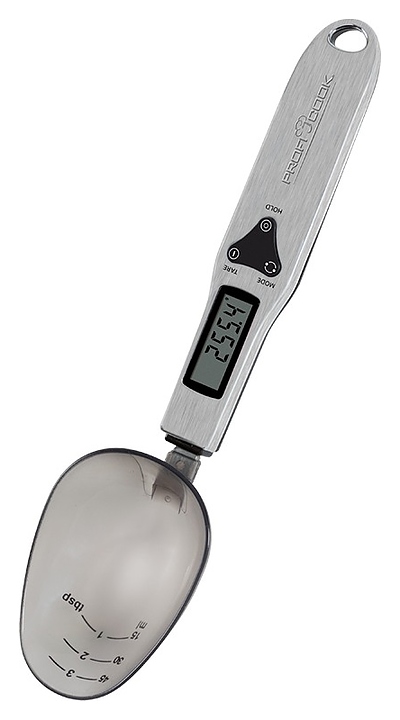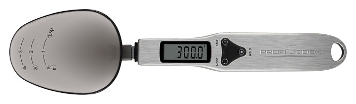 Кухонные весы Profi Cook PC-LW 1214 предназначены для измерения массы небольшого количества сахара, муки, специй, а также других сыпучих ингридиентов и жидкостей в домашних условиях. Модель в форме ложки оснащена рукояткой с отверстием для подвешивания и панелью управления с жидкокристаллическимм дисплеем. Корпус выполнен из нержавеющей стали, мерная емкость – из пластика. Особенности: