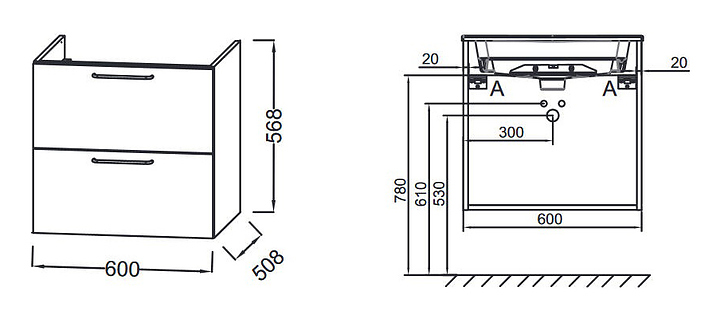 Тумба с раковиной Jacob Delafon Odeon Rive Gauche EB2520-R5-E52+EXBA112-00 60 см, дуб табак