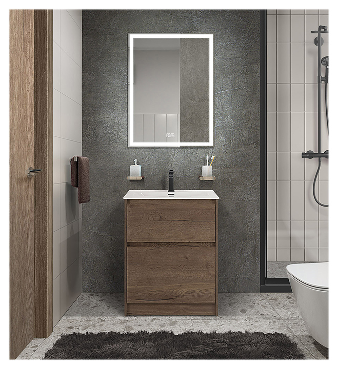 Тумба с раковиной BelBagno KRAFT39-600/390-2C-PIA-RT + BB600/390ETL 60 см, Rovere Tabacco