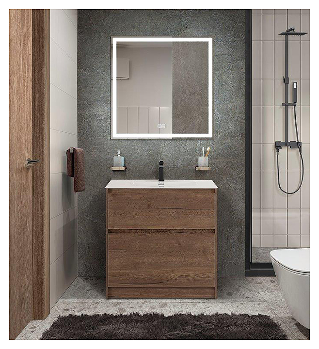 Тумба с раковиной BelBagno KRAFT39-800/390-2C-PIA-RT + BB800/390ETL 80 см, Rovere Tabacco