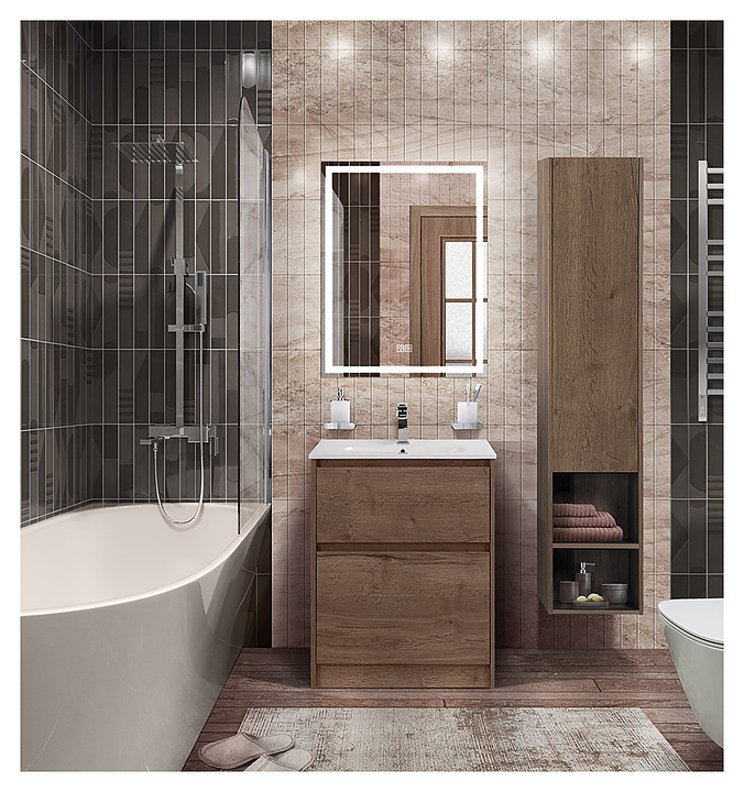 Тумба с раковиной BelBagno KRAFT-600-2C-PIA-RT + BB1923-600 60 см, Rovere Tabacco