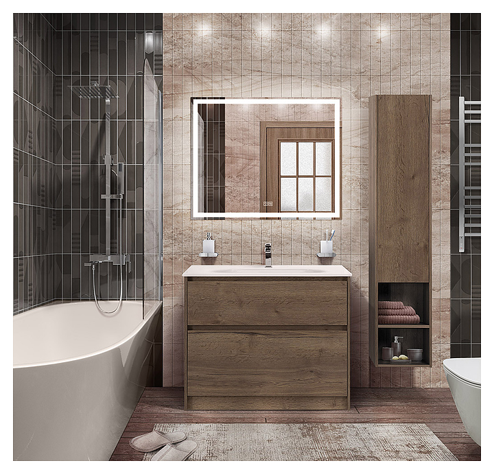 Тумба с раковиной BelBagno KRAFT-1000-2C-PIA-RT + BB1010/465-LV-VTR-BL 100 см, Rovere Tabacco