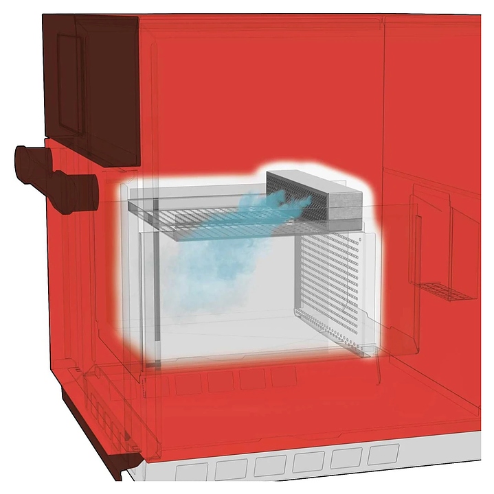 Уровень открытия двери находится ниже поверхности рабочей камеры для избежания ожогов