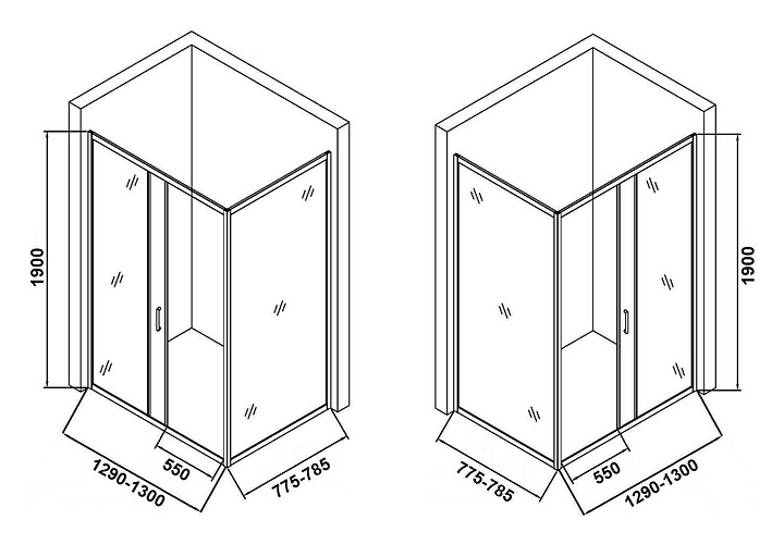 Уголок душевой ORANGE E23-13080TCR 130х80х190 см