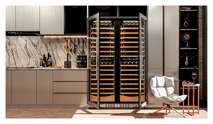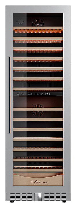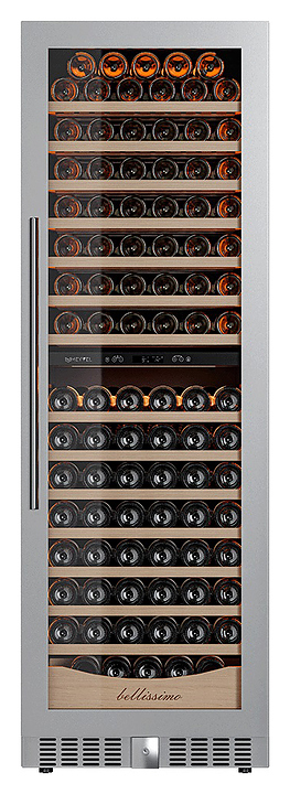 Винный шкаф MEYVEL MV163PRO-KST2 предназначен для демонстрации, хранения и создания оптимальных условий для сохранения всех вкусовых свойств вина в бутылках на предприятиях общественного питания, торговли, в барах, ресторанах, специализированных магазинах, частных домах или квартирах. Модель оснащена сенсорной панелью управления, 2 электронными термостатами и внутренней светодиодной подсветкой. Корпус выполнен из стали, дверь - из стальной рамы и тройного стекла с защитой от ультрафиолетовых лучей, полки - из массива бука. В комплект поставки входят петли для перенавешивания двери. Особенности: