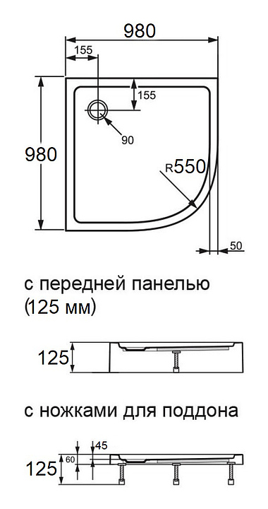 Поддон душевой Agger A01-100TCR/T 100х100 см, акрил