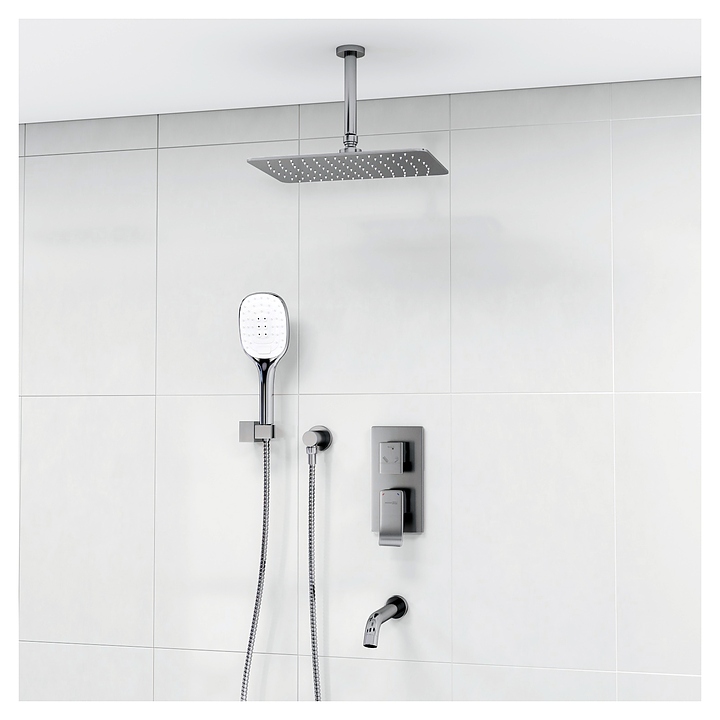 Встраиваемый душевой комплект Wasserkraft A171668 используется в ванных комнатах. Модель оснащена прямоугольным верхним тропическим душем, потолочным кронштейном для верхнего душа, трехрежимным ручным душем с душевым шлангом и поворотным настенным держателем, изливом, смесителем, керамическим картриджем, обеспечивающим плавный ход рычага смесителя, контроль и точность при выборе напора и температуры воды, а также аэратором для создания мягкой ровной струи без разбрызгивания. Изделие выполнено из латуни, отличающейся прочностью, долговечностью и устойчивостью к перепадам температур. В комплект поставки входит скрытая часть для установки. Комплектация: