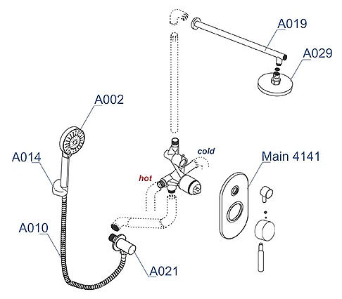 Комплект душевой встраиваемый Wasserkraft A14129 хром