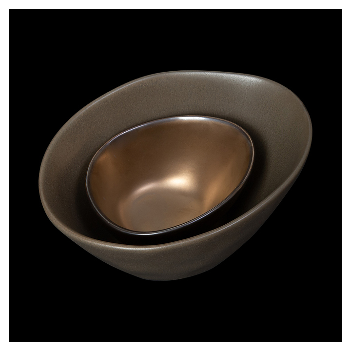 Овальный салатник Corone Luminare HS027524 предназначен для использования в кафе, ресторанах, частных домах и квартирах, подходит для сервировки стола при проведении деловых и камерных мероприятий. Дизайн серии выполнен в современных цветовых решениях с сочетанием медных отливов и матовых поверхностей. Посуда изготавливается из фарфора. Особенности: