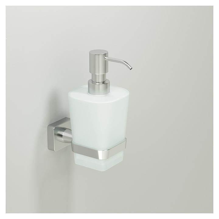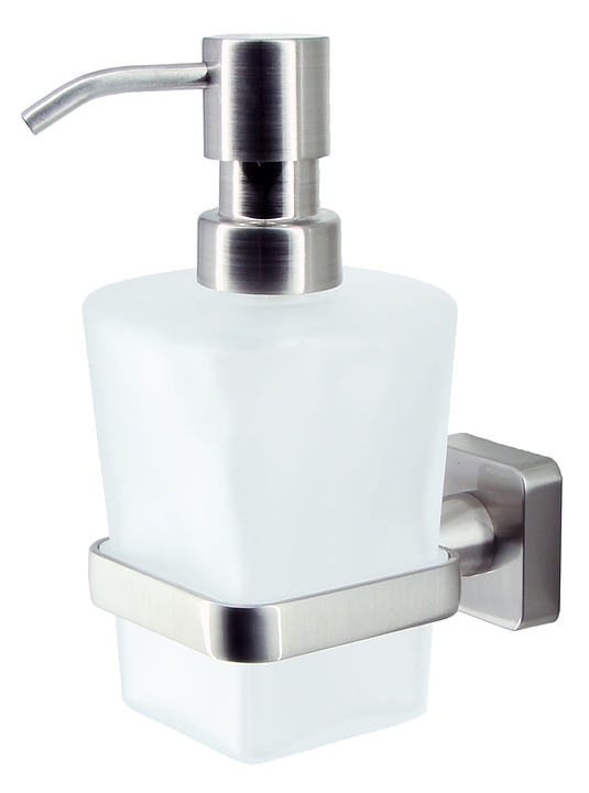 Дозатор Wasserkraft Rhin K-8799 предназначен для подачи моющего средства на кухне или в ванной комнате. Аксессуары коллекции Rhin выполнены в современном стиле и идеально дополнят дизайн любой ванной комнаты. Изделие выполнено из металла и матового стекла. В комплект поставки входят дозатор, держатель и уплотнительные пластиковые кольца. Особенности: