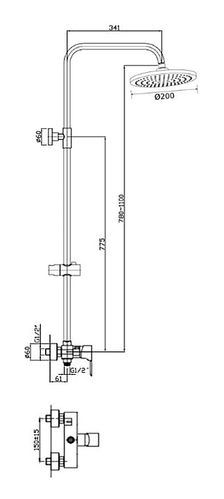 Стойка душевая ORANGE Flipo M23-912cr
